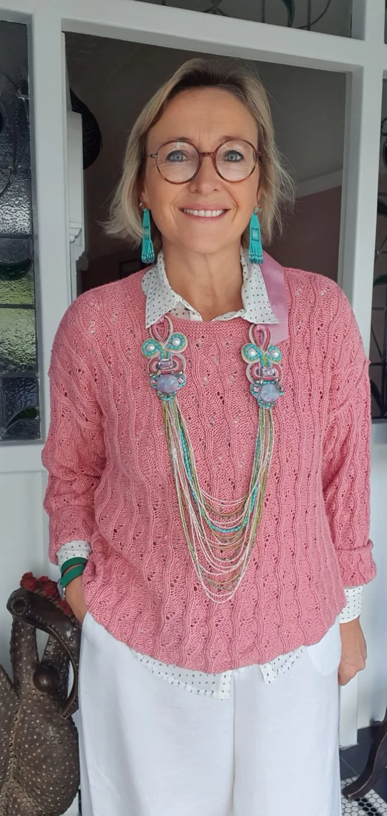 1/ It is easy to play with necklaces and accumulate them. Preferably choose locally made pieces that are light weight and that you can mix and match.